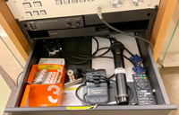 ![]() 有線マイク、設置PC、書画カメラ ![]() 電池、無線マイク(ハンド1/ピン1)、リモコン |